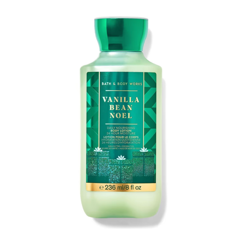 لوسیون بث اند بادی رایحه گرم و شیرین غنی شده با روغن نارگیل و شی باتر مدل Bath&Body works Vanilla Bean Noel💚🌱