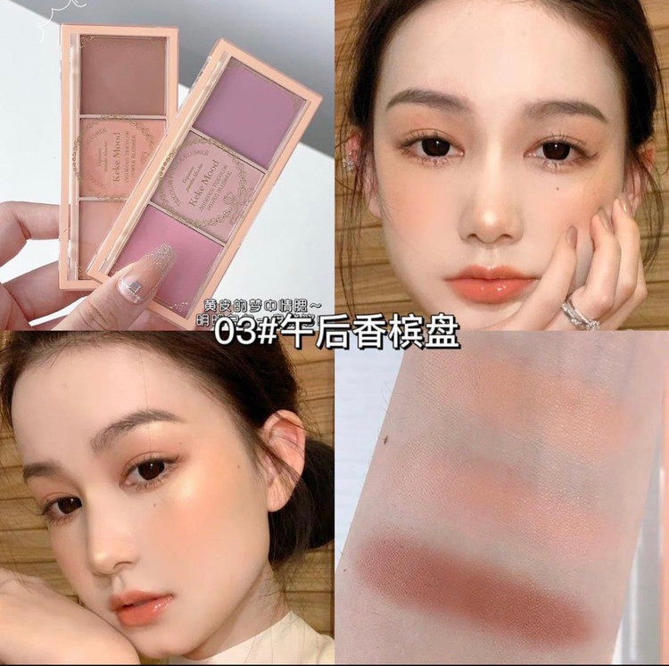 پالت پودری رژگونه سه عددی کیکی موود بدون ایجاد لک مدل AFTERNOON 🥯⚡️