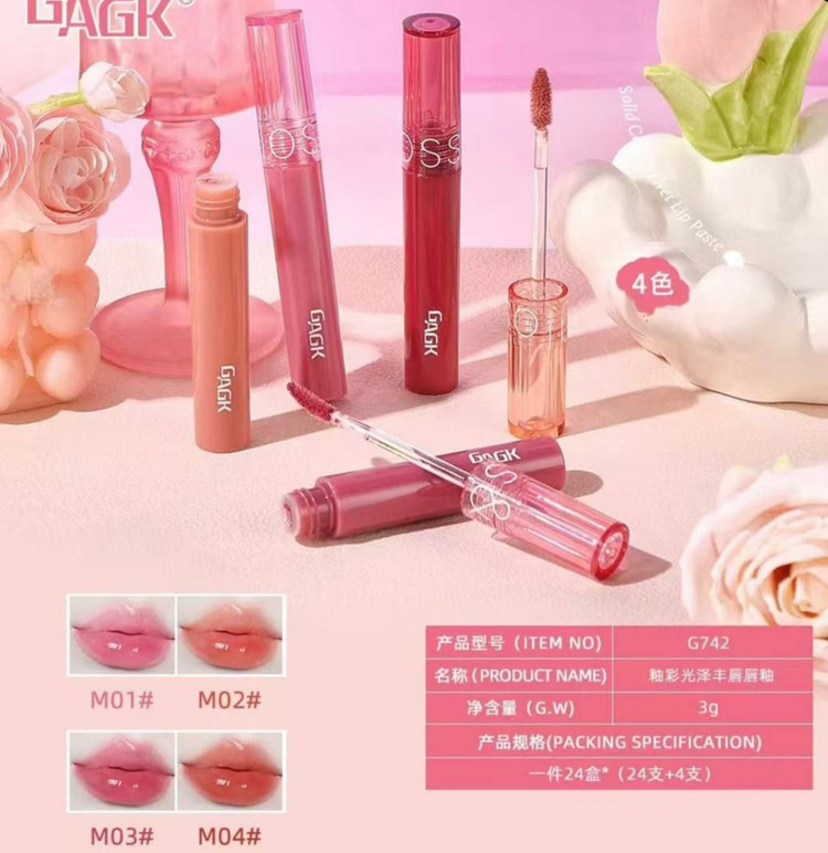 لیپ گلاس شیشه ای GAGK با رنگ‌بندی خوش رنگ بهاری و قلوه ای کننده لب🍇⚡️