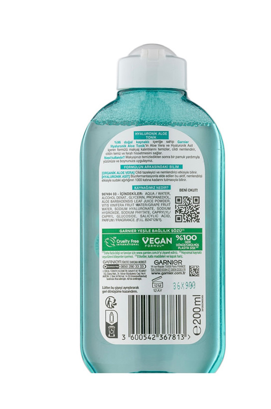 •این تونر حاوی عصاره آلوئه ورا خالص و هیالورونیک اسید است که همین ترکیب جذاب سبب شده استفاده روزانه از آن علاوه بر پاکسازی تمام و کمال آلودگی ها ،موجب آبرسانی ، افزایش لطافت و درخشندگی پوست شود.