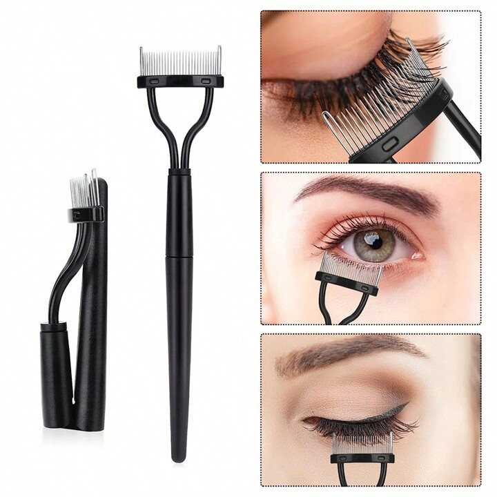 برس جداکننده و نظم دهنده مژه با دندانه فلزی و بدنه سیلیکونی باقابلیت جمع شوندگی و استحکام بالا | رنگ مشکی 👁️🌸